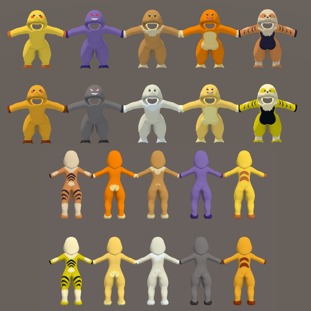 - Textures for Eevee, Charmander, Pikachu, Gengar, Arcanine, and shiny variant with AudioLink Onesies!
